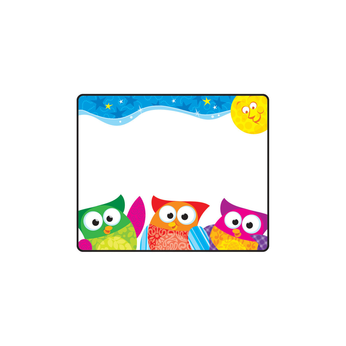 Bright and welcoming labels are acid free and designed for no-smear writing with markers or pens. Perfect for name tags, labels stay put and won't leave residue on clothes! Also great for cubbies, lockers, storage boxes, envelopes, learning centers, and so much more. Self-adhesive. 36 per pack, 2½" x 3". Coordinates with Owl-Stars! Collection.