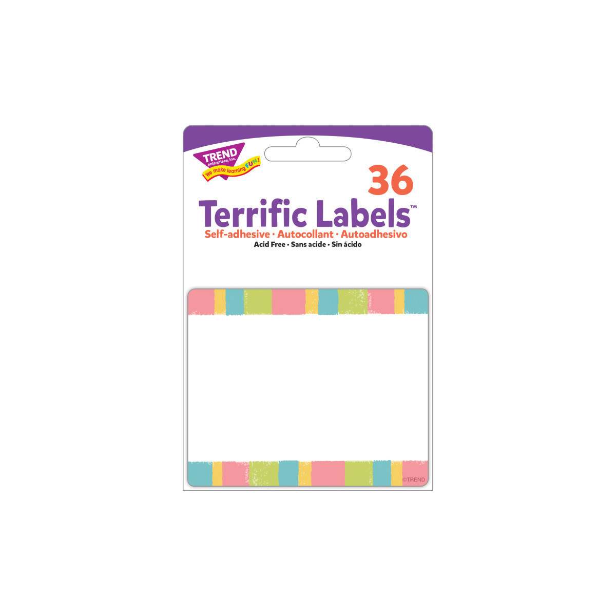 Bright and welcoming labels are acid free and designed for no-smear writing with markers or pens. Perfect for name tags, labels stay put and won't leave residue on clothes! Also great for cubbies, lockers, storage boxes, envelopes, learning centers, and so much more. Self-adhesive. 36 per pack, 2 1/2" x 3".