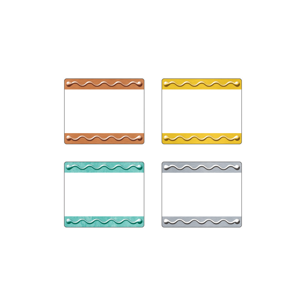 Bright and welcoming labels are acid free and designed for no-smear writing with markers or pens. Perfect for name tags, labels stay put and won't leave residue on clothes! Also great for cubbies, lockers, storage boxes, envelopes, learning centers, and so much more. Self-adhesive. 36 per pack, 2 1/2" x 3". 9 each of 4 designs.