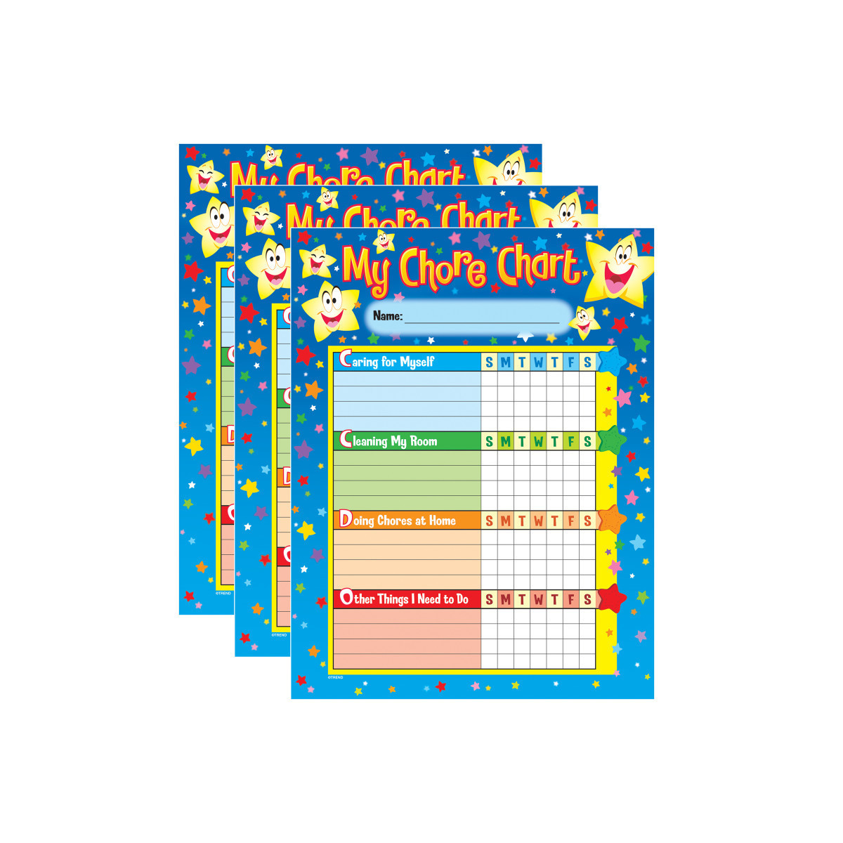 Kids will truly feel like stars as they track progress and achievement with this colorful Chore Chart. Charts can be personalized with child's name and specific tasks. Star stickers included to celebrate progress. 25 charts per pad. 100 sparkle star stickers included. Sold as 3 pads for a total of 75 charts.
