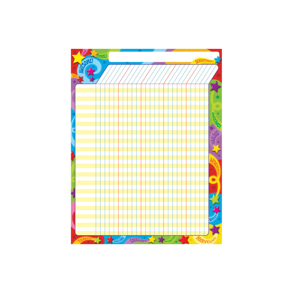Assign chores, track progress, homework, attendance, and more. Perfect for schools, clubs, offices, and homes. 17" x 22". Vertical chart has 36 rows/25 columns. Sturdy and durable. Coordinate with a variety of TREND products. Ideas, activities, and reproducibles on back.
