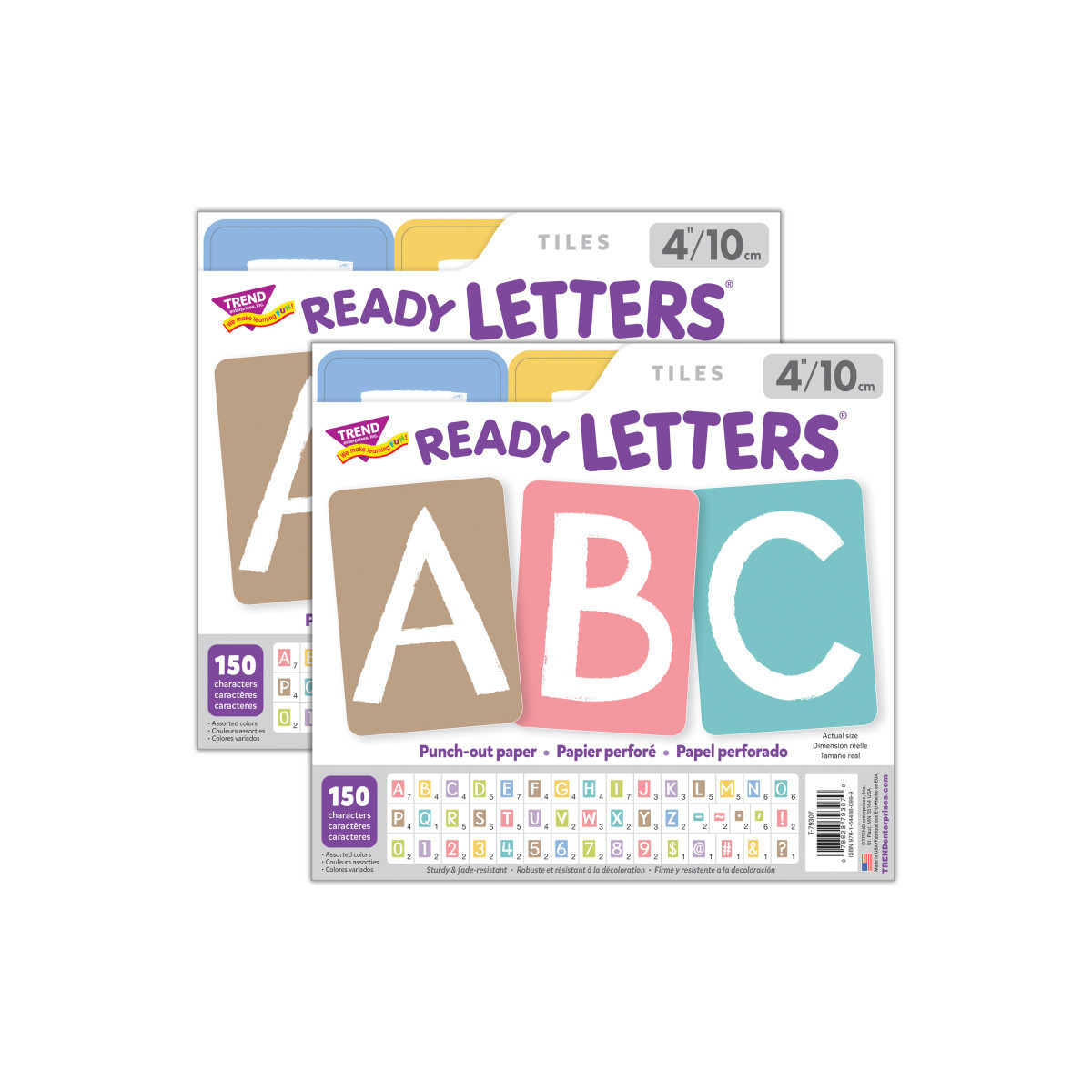 Lively letters ... limitless possibilities! Convenient, reusable, and micro-perforated to be easy to punch apart. Great for student work displays, bulletin boards, signs, banners, news boards, learning activities, labeling, and much more! You can even punch holes in the corners of letter tiles and string together a custom message! Fade-resistant colors on durable paper stock. Each pack includes 150 pieces: 111 uppercase letters, 20 numerals 0-9, and 19 punctuation marks. Sold as 2 packs for a total of 300 pieces.