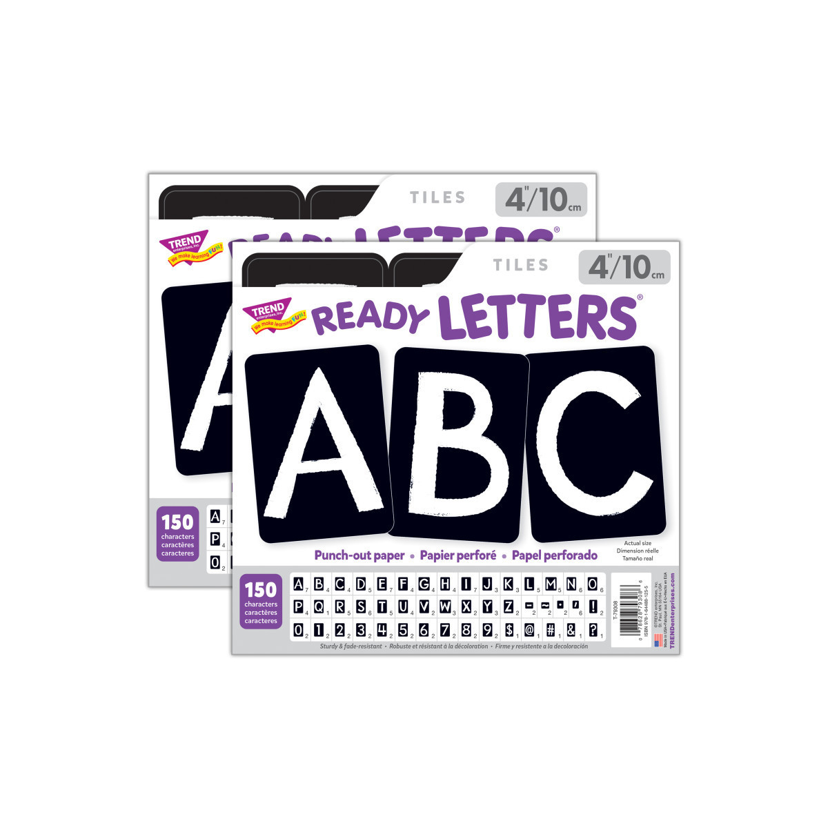 Lively letters ... limitless possibilities! Convenient, reusable, and micro-perforated to be easy to punch apart. Great for student work displays, bulletin boards, signs, banners, news boards, learning activities, labeling, and much more! You can even punch holes in the corners of letter tiles and string together a custom message! Fade-resistant colors on durable paper stock. Each pack includes 150 pieces: 111 uppercase letters, 20 numerals 0-9, and 19 punctuation marks. Sold as 2 packs for a total of 300 pieces.