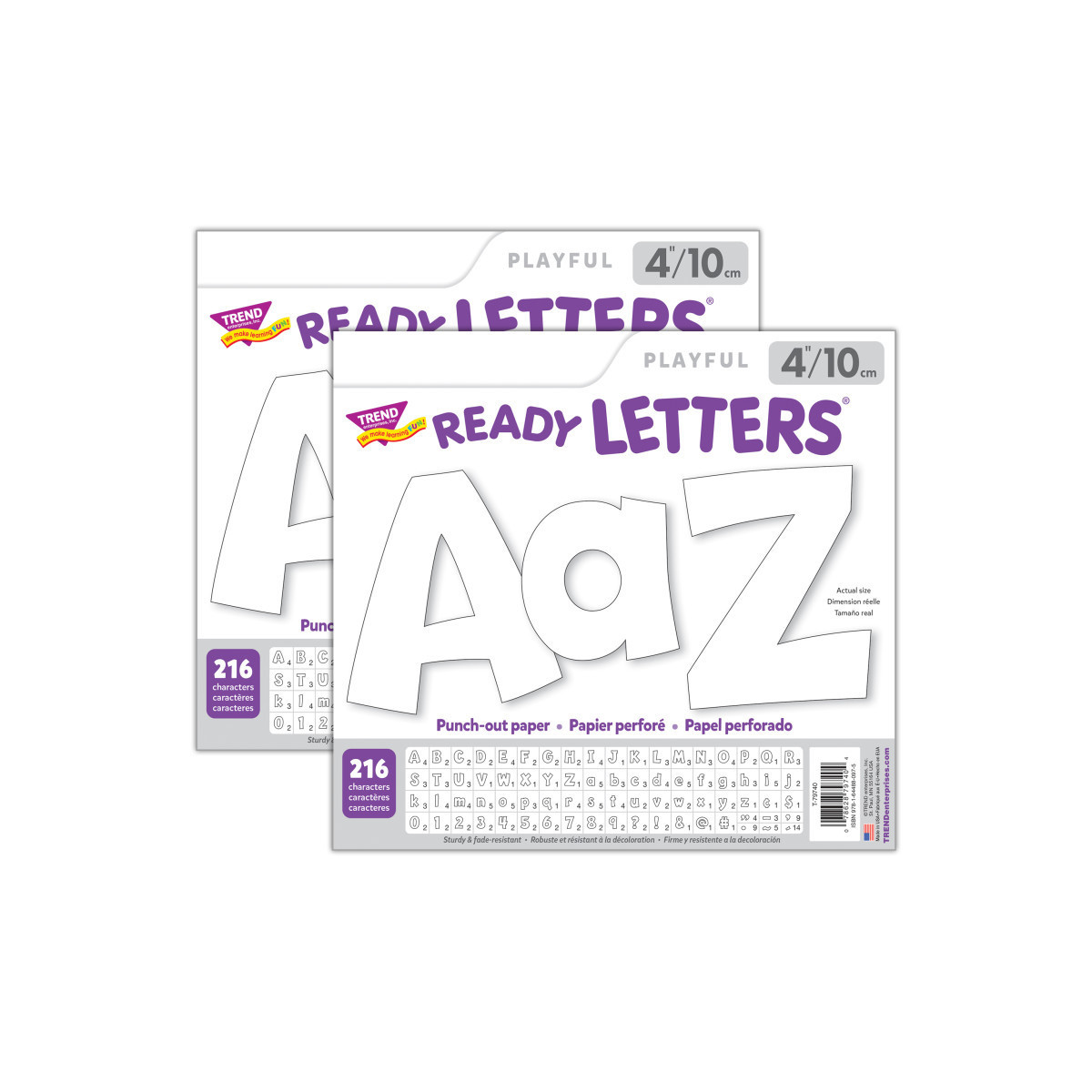 Lively letters ... limitless possibilities! Convenient, reusable, and easy to use! Great for student work displays, bulletin boards, signs, banners, news boards, learning activities, labeling, and much more! Fade-resistant colors coordinate with TREND products. Durable and reusable. Each pack includes 216 pieces: 59 uppercase letters, 84 lowercase letters, 20 numerals 0-9, 35 punctuation marks, and 18 Spanish accent marks. Sold as 2 packs for a total of 432 pieces.