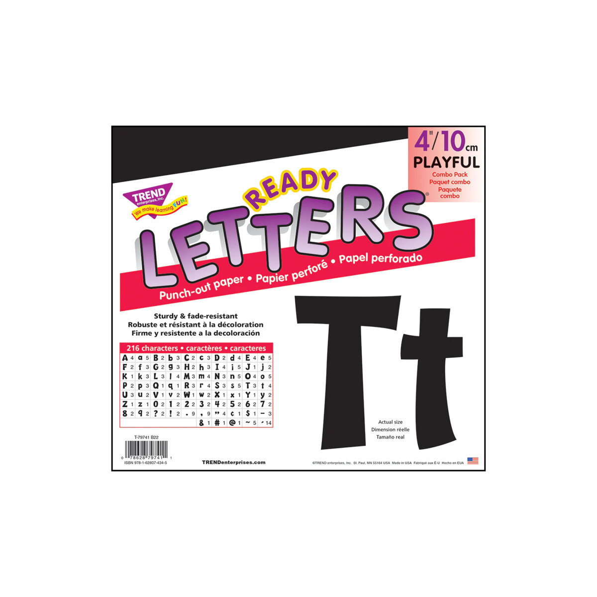Lively letters, limitless possibilities! Convenient, reusable, and easy to use! Great for student work displays, bulletin boards, signs, banners, news boards, learning activities, labeling, and much more! Fade-resistant colors coordinate with TREND products. Durable and reusable. Includes 59 uppercase letters, 84 lowercase letters, 20 numerals 0-9, 35 punctuation marks, and 18 Spanish accent marks.
