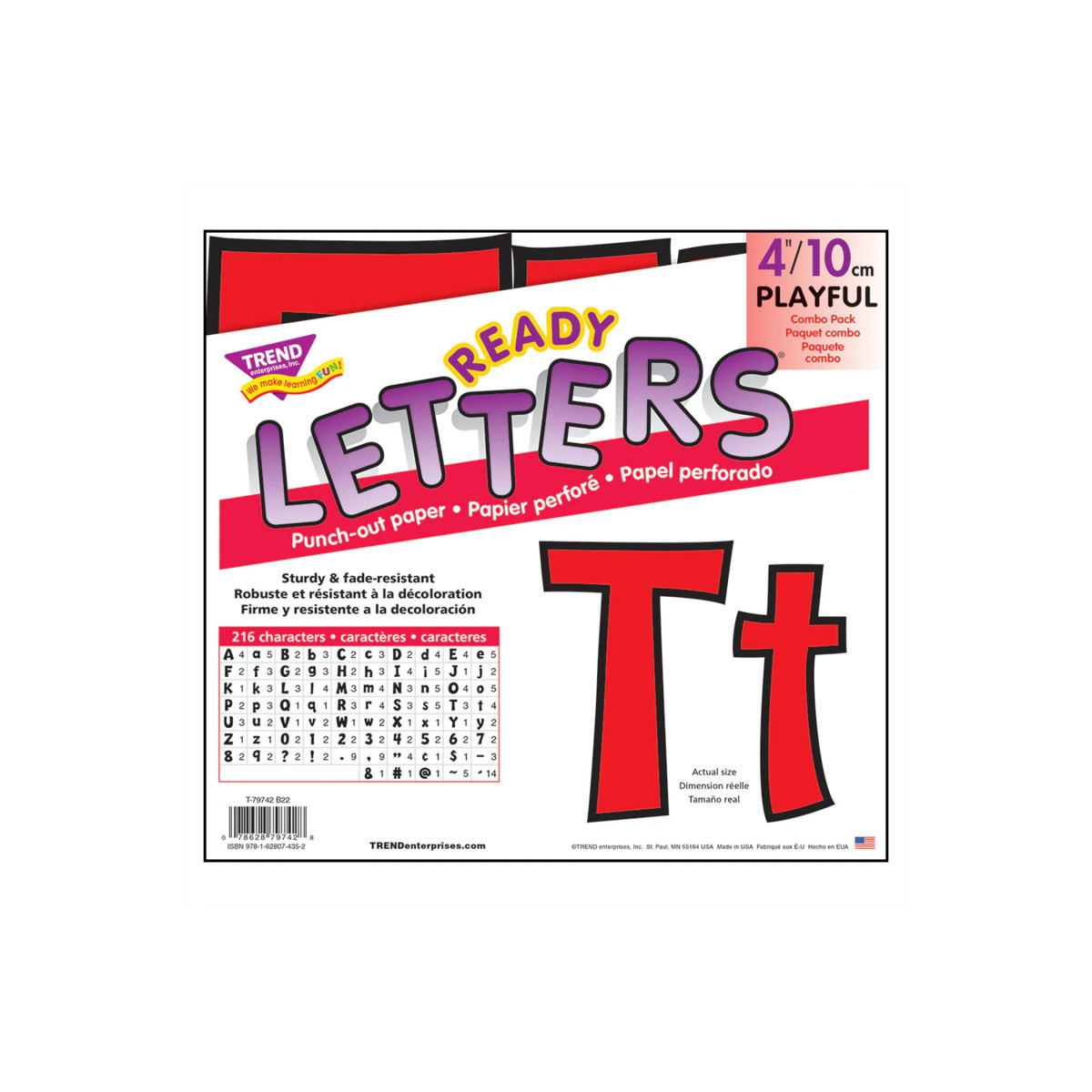 Lively letters, limitless possibilities! Convenient, reusable, and easy to use! Great for student work displays, bulletin boards, signs, banners, news boards, learning activities, labeling, and much more! Fade-resistant colors coordinate with TREND products. Durable and reusable. Includes 59 uppercase letters, 84 lowercase letters, 20 numerals 0-9, 35 punctuation marks, and 18 Spanish accent marks.