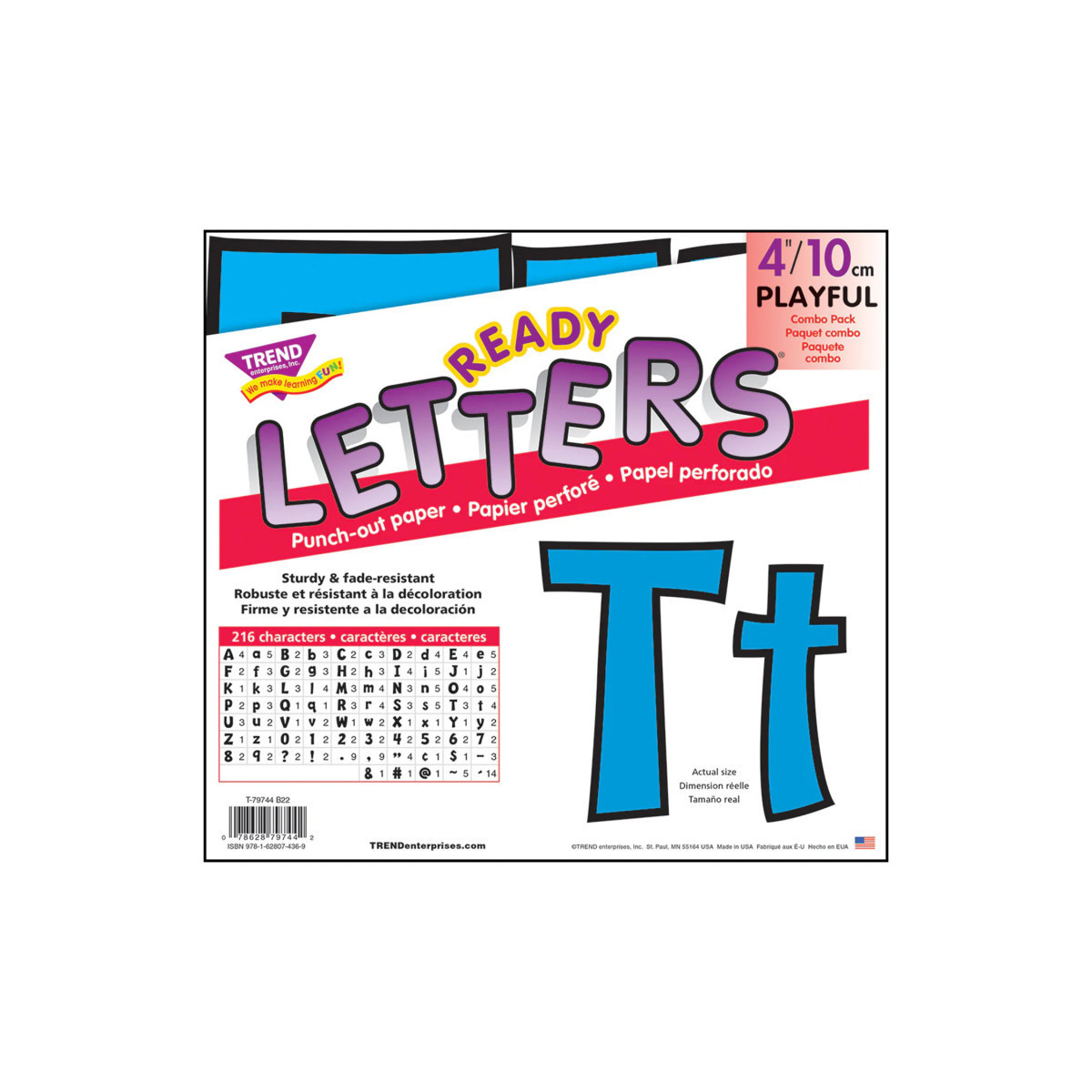 Lively letters, limitless possibilities! Convenient, reusable, and easy to use! Great for student work displays, bulletin boards, signs, banners, news boards, learning activities, labeling, and much more! Fade-resistant colors coordinate with TREND products. Durable and reusable. Includes 59 uppercase letters, 84 lowercase letters, 20 numerals 0-9, 35 punctuation marks, and 18 Spanish accent marks.