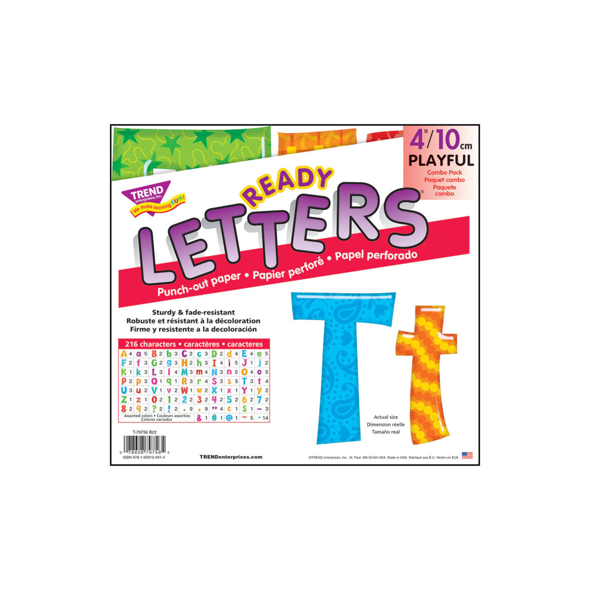 Lively letters, limitless possibilities! Convenient, reusable, and easy to use! Great for student work displays, bulletin boards, signs, banners, news boards, learning activities, labeling, and much more! Fade-resistant colors coordinate with TREND products. Durable and reusable. Includes 59 uppercase letters, 84 lowercase letters, 20 numerals 0-9, 35 punctuation marks, and 18 Spanish accent marks.