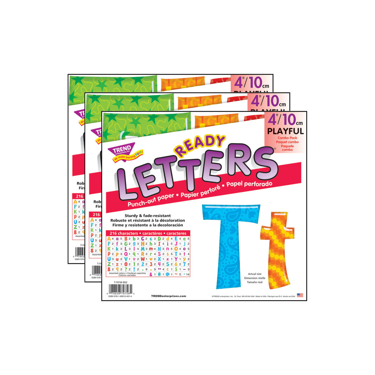 Lively letters, limitless possibilities! Convenient, reusable, and easy to use. Great for student work displays, bulletin boards, signs, banners, news boards, learning activities, labeling, and much more! Fade-resistant colors coordinate with TREND products. Durable. Each pack includes 59 uppercase letters, 84 lowercase letters, 20 numerals 0-9, 35 punctuation marks, and 18 Spanish accent marks in assorted colors and patterns. Sold as 3 packs. Coordinates with Owl-Stars! Collection.