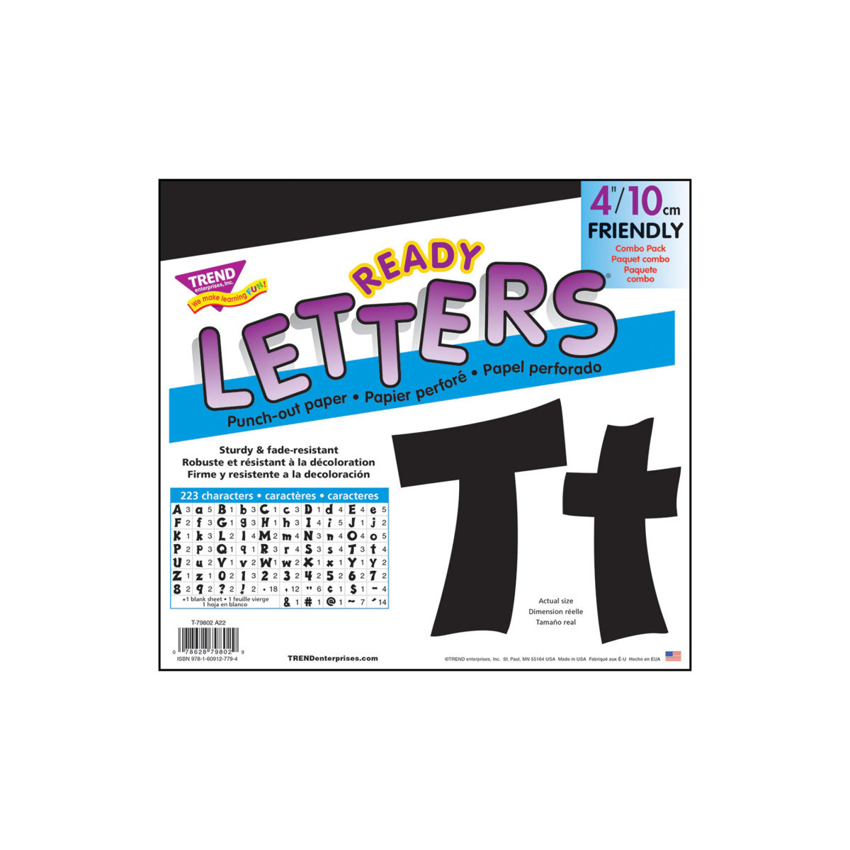 Lively letters with limitless possibilities! Convenient, reusable, and easy to use. Ready Letters® are great for use on bulletin boards, signs, news boards, showcases, student work displays, alphabet learning activities, banners, labels, and more. Fade-resistant colors. Durable and reusable. Includes 50 uppercase letters, 82 lowercase letters, 21 numerals 0-9, 44 punctuation marks, 28 Spanish accent marks, and 1 blank sheet.
