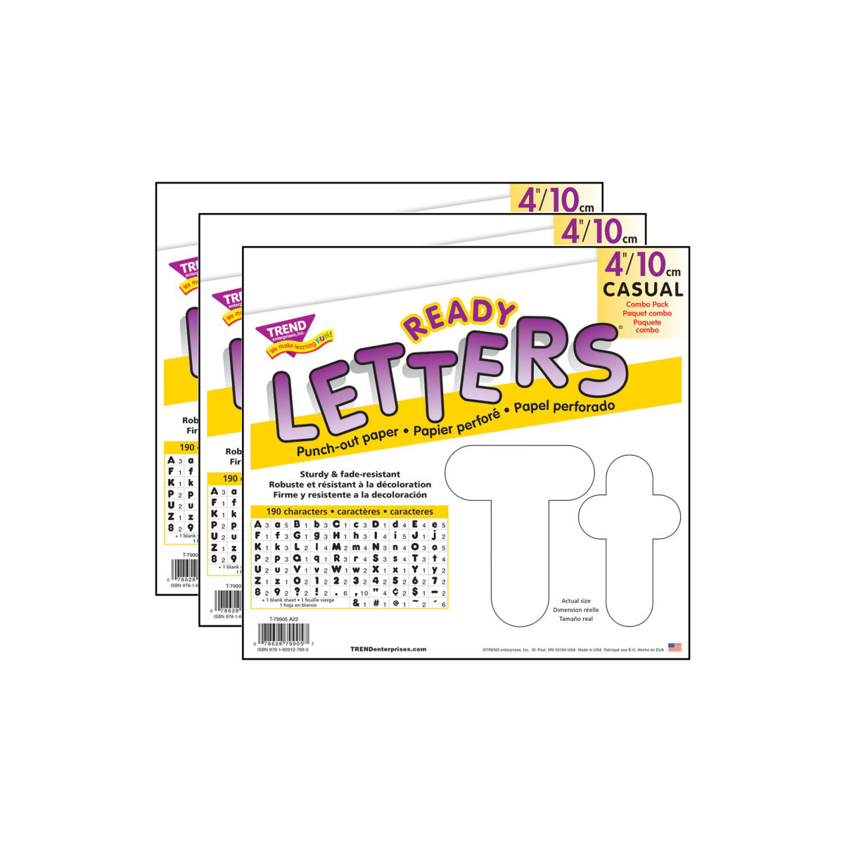 Lively letters with limitless possibilities! Convenient, reusable, and easy to use. Ready Letters are great for use on bulletin boards, signs, news boards, showcases, student work displays, alphabet learning activities, banners, labels, and more. Fade-resistant colors. Durable and reusable. Each pack includes 50 uppercase letters, 82 lowercase letters, 20 numerals 0-9, 29 punctuation marks, and 1 blank sheet. Sold as 3 packs.
