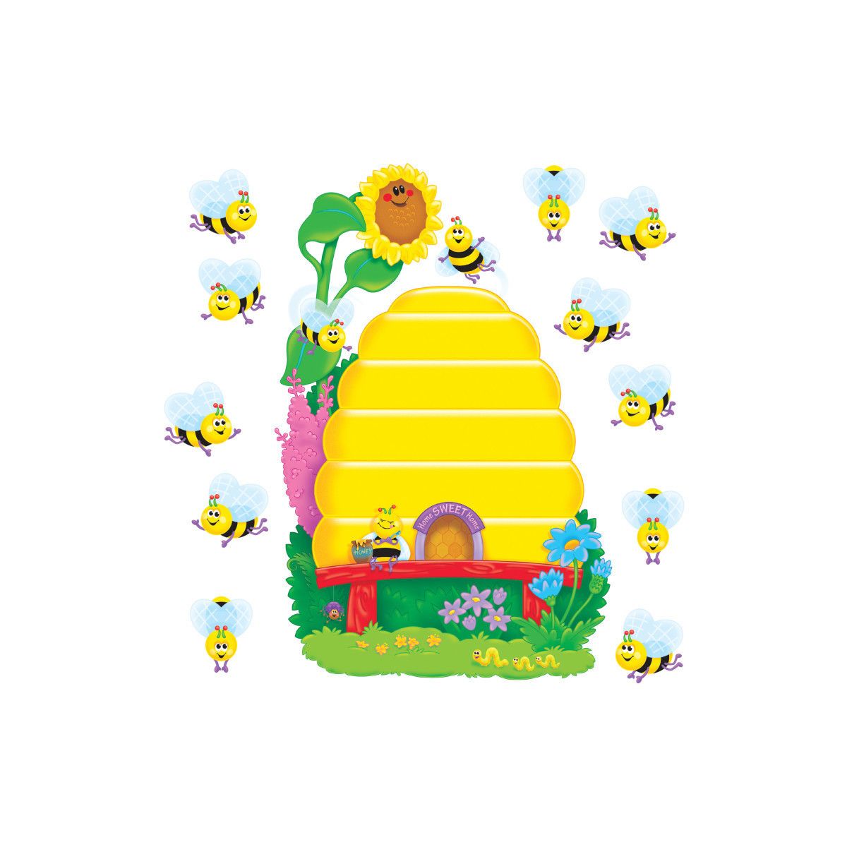 37 piece set. Beehive is 35" high. Printed with vivid inks on sturdy tagboard for years of use.