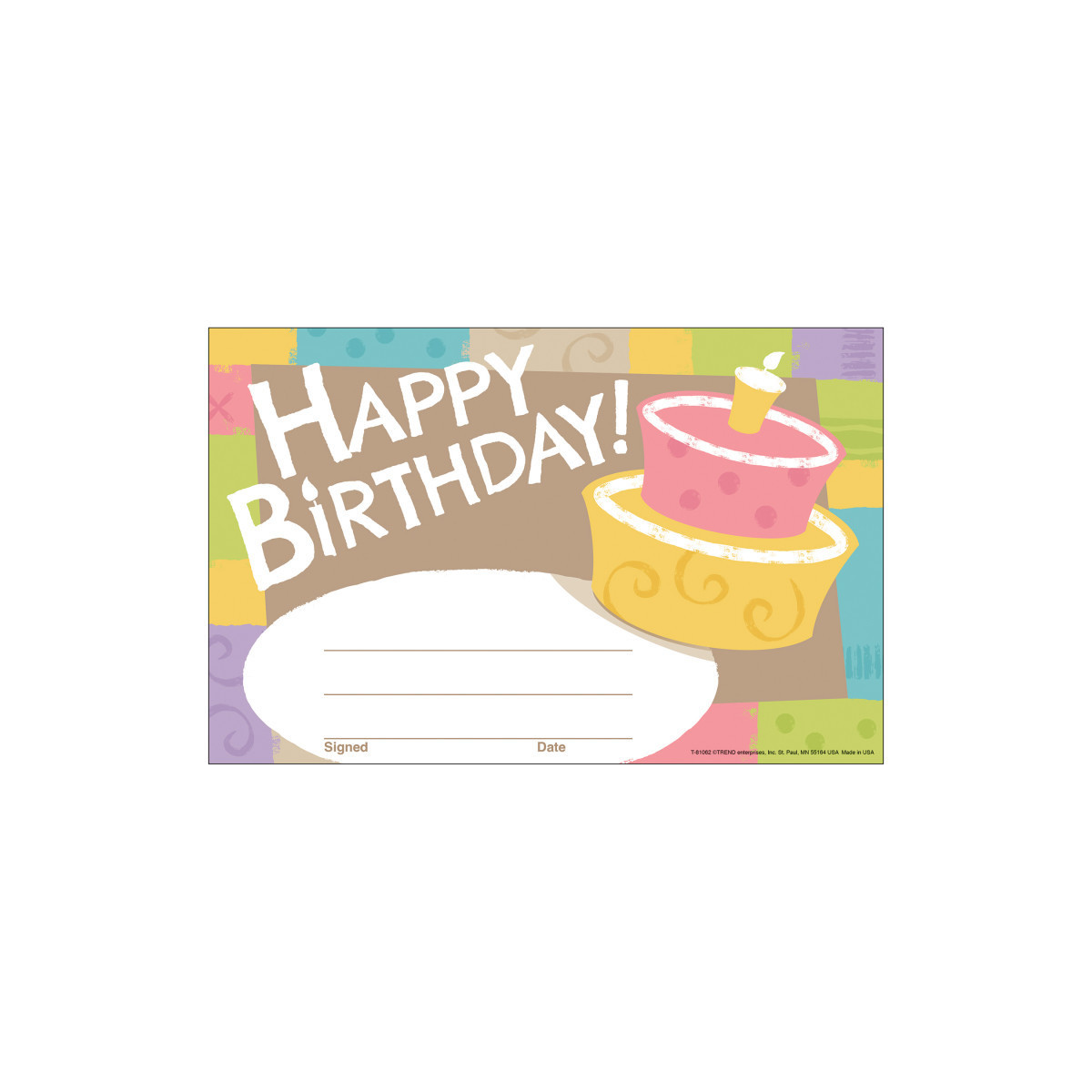 • Ample space for child's name and personal message, plus your signature and date.