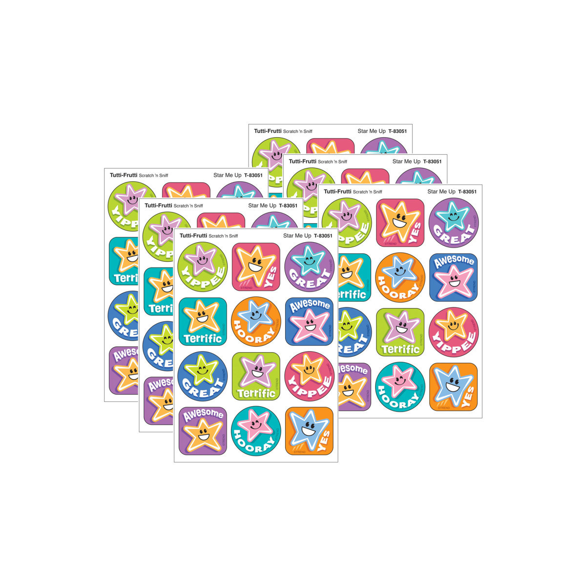 Encouraging, engaging, irresistibly collectible designs are e-SCENT-ial motivators and rewards. Scratch 'n sniff aroma plus fresh, friendly artwork appeal to kids and the kid in all of us. Four sheets per package, 48 stickers per pack. Each sticker 1.25" diameter. Photo safe, acid free for journaling, allergen free, and made in the USA. Sold as 6 packs for a total of 288 stickers.