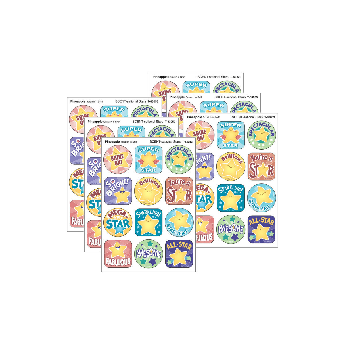 Encouraging, engaging, irresistibly collectible designs are e-SCENT-ial motivators and rewards. Scratch 'n sniff aroma plus fresh, friendly artwork appeal to kids and the kid in all of us. Four sheets per package, 48 stickers per pack. Each sticker 1.25" diameter. Photo safe, acid free for journaling, allergen free, and made in the USA. Sold as 6 packs for a total of 288 stickers.