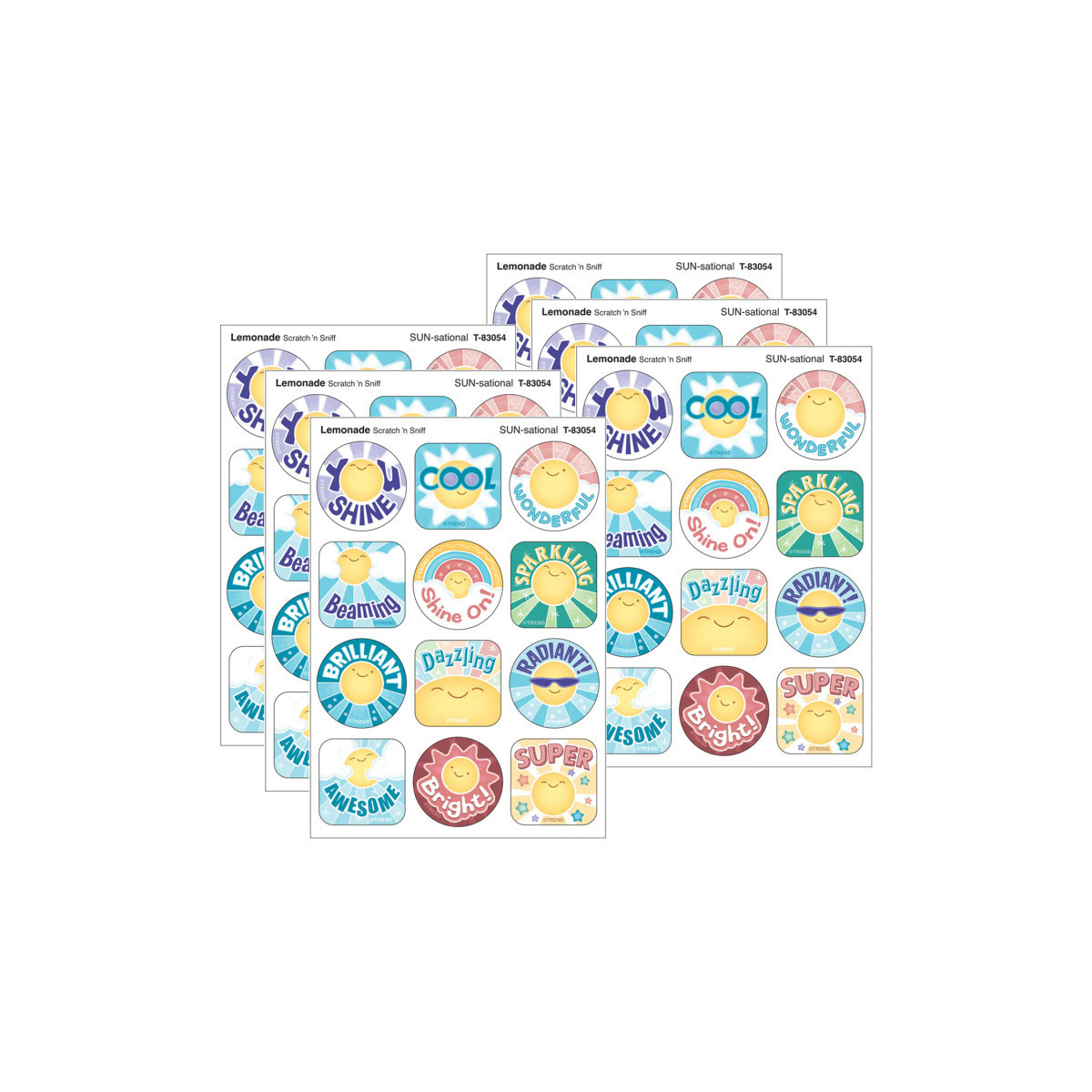 Encouraging, engaging, irresistibly collectible designs are e-SCENT-ial motivators and rewards. Scratch 'n sniff aroma plus fresh, friendly artwork appeal to kids and the kid in all of us. Four sheets per package, 48 stickers per pack. Each sticker 1.25" diameter. Photo safe, acid free for journaling, allergen free, and made in the USA. Sold as 6 packs for a total of 288 stickers.