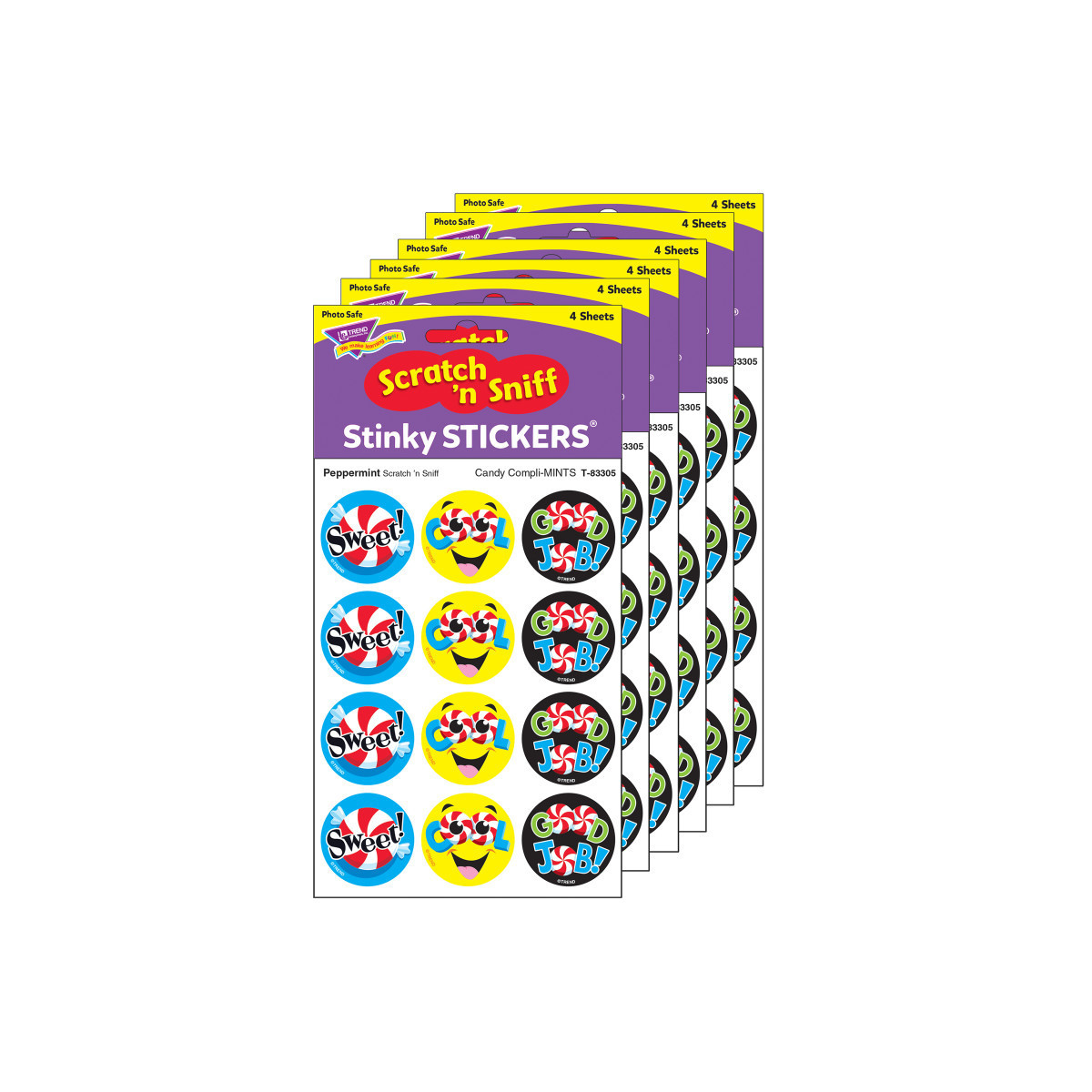 Everyone's favorite stickers! Stinky Stickers® are fun to collect and trade, provide encouragement, and celebrate success. Acid free, nontoxic, and safe for use on photos. Each sticker measures 1-1/4" diameter. Each pack includes 48 stickers (3 designs; 4 sheets). Sold as 6 packs for a total of 288 stickers.