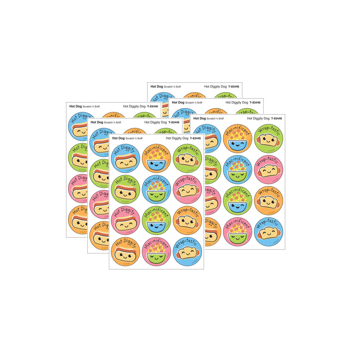 Encouraging, engaging, irresistibly collectible designs are e-SCENT-ial motivators and rewards. Scratch 'n sniff aroma plus fresh, friendly artwork appeal to kids and the kid in all of us. Four sheets per package, 48 stickers per pack. Each sticker 1.25" diameter. Photo safe, acid free for journaling, allergen free, and made in the USA. Sold as 6 packs for a total of 288 stickers.