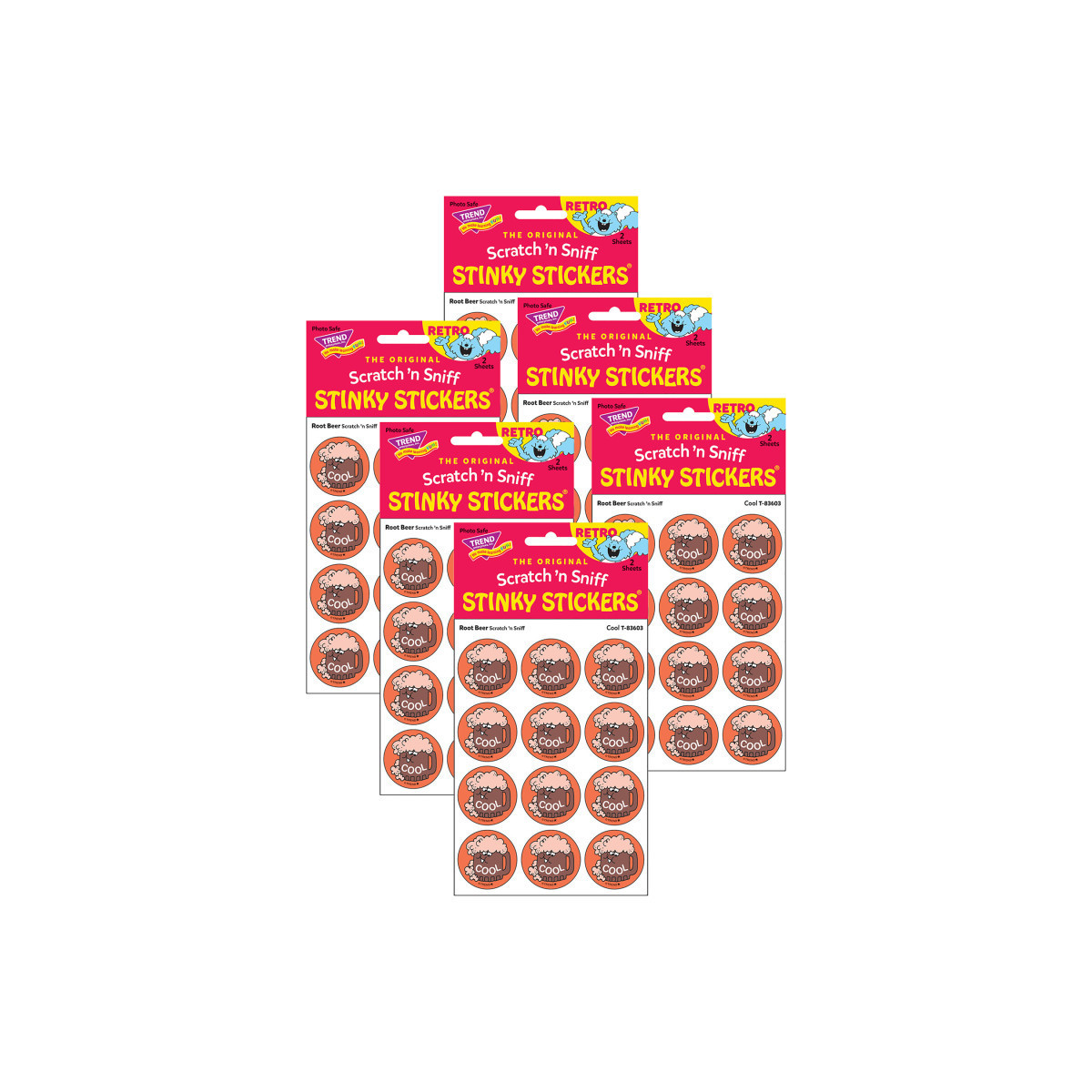 Get a whiff of this Cool, root beer-scented sticker! TREND Scratch 'n Sniff Stinky Stickers from the '80s are BACK! Fun to collect, trade, and celebrate accomplishments and special occasions. Collectors will be happy to spot the star symbol to distinguish TREND Retro Stinky Stickers from those printed in the 1980s. Each pack includes 24 stickers on 2 sheets. Sold as 6 packs for a total of 244 stickers.