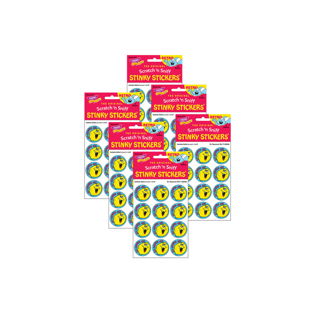 Get a whiff of this Ex-Squeeze Me!, lemon juice-scented sticker! TREND Scratch 'n Sniff Stinky Stickers from the '80s are BACK! Fun to collect, trade, and celebrate accomplishments and special occasions. Collectors will be happy to spot the star symbol to distinguish TREND Retro Stinky Stickers from those printed in the 1980s. Each pack includes 24 stickers on 2 sheets. Sold as 6 packs for a total of 244 stickers.