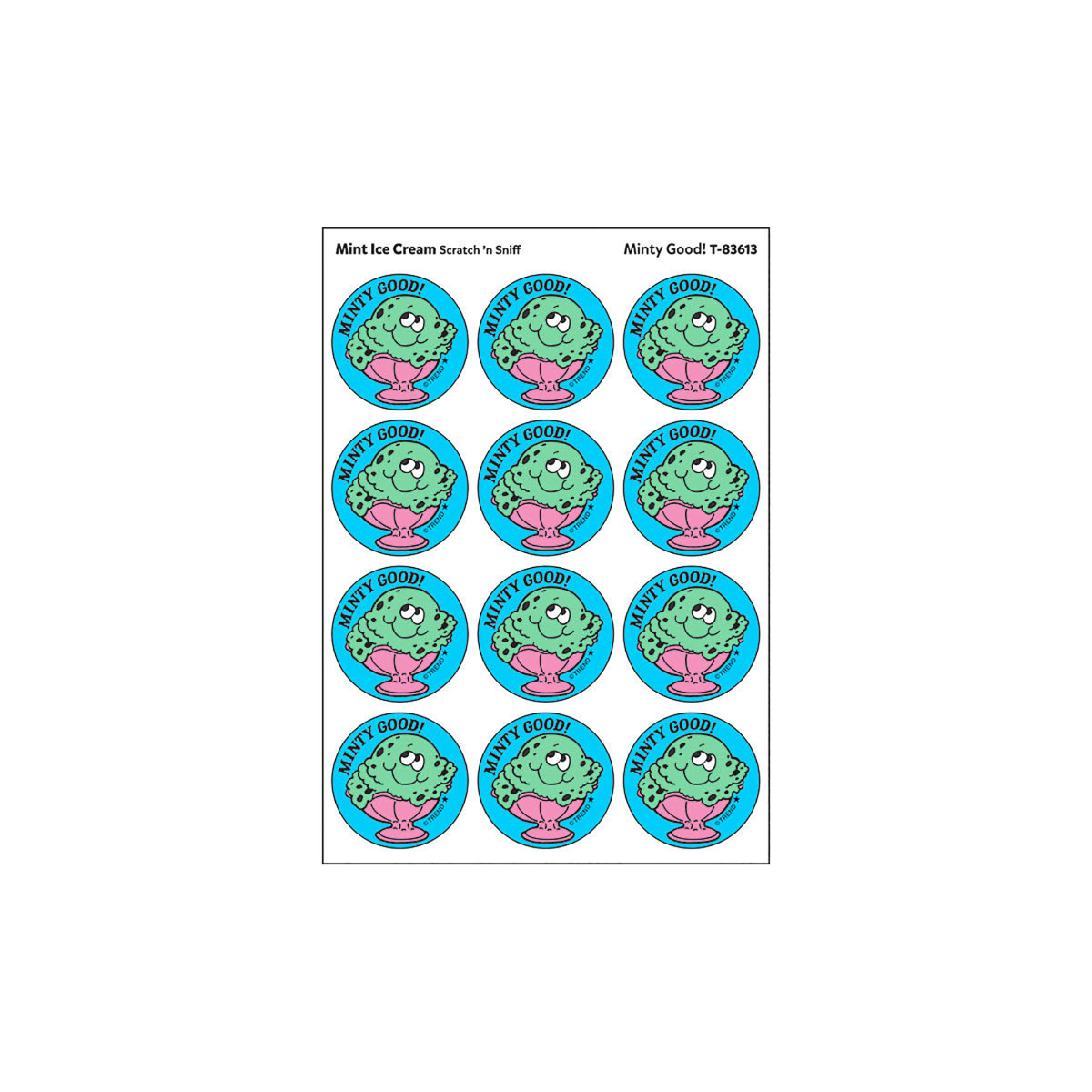Get a whiff of this Minty Good!, mint ice cream-scented sticker! TREND Scratch 'n Sniff Stinky Stickers from the '80s are BACK! Fun to collect, trade, and celebrate accomplishments and special occasions. Collectors will be happy to spot the star symbol to distinguish TREND Retro Stinky Stickers from those printed in the 1980s. Each pack includes 24 stickers on 2 sheets.