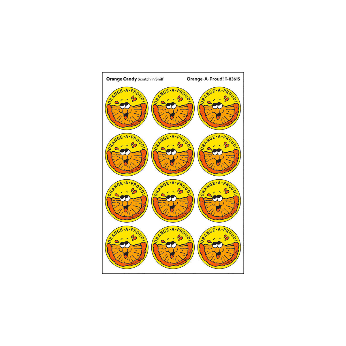 Get a whiff of this Orange-A-Proud, orange candy-scented sticker! TREND Scratch 'n Sniff Stinky Stickers from the '80s are BACK! Fun to collect, trade, and celebrate accomplishments and special occasions. Collectors will be happy to spot the star symbol to distinguish TREND Retro Stinky Stickers from those printed in the '80s. Each pack includes 24 stickers on 2 sheets.