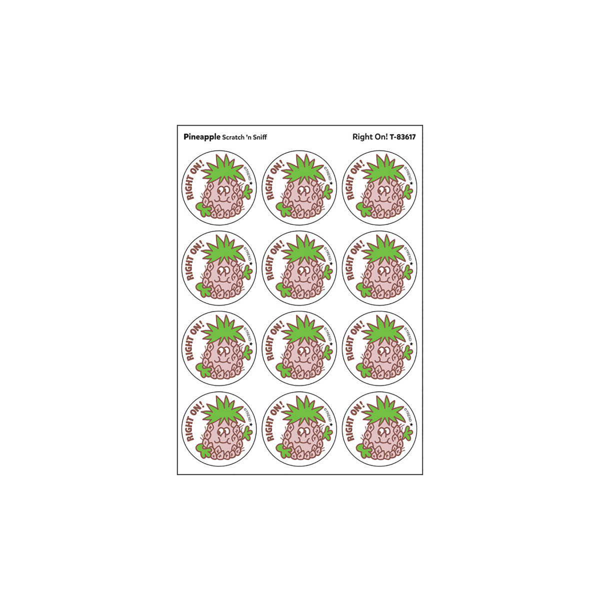 Get a whiff of this Right On, pineapple-scented sticker! TREND Scratch 'n Sniff Stinky Stickers from the '80s are BACK! Fun to collect, trade, and celebrate accomplishments and special occasions. Collectors will be happy to spot the star symbol to distinguish TREND Retro Stinky Stickers from those printed in the 1980s. Each pack includes 24 stickers on 2 sheets.