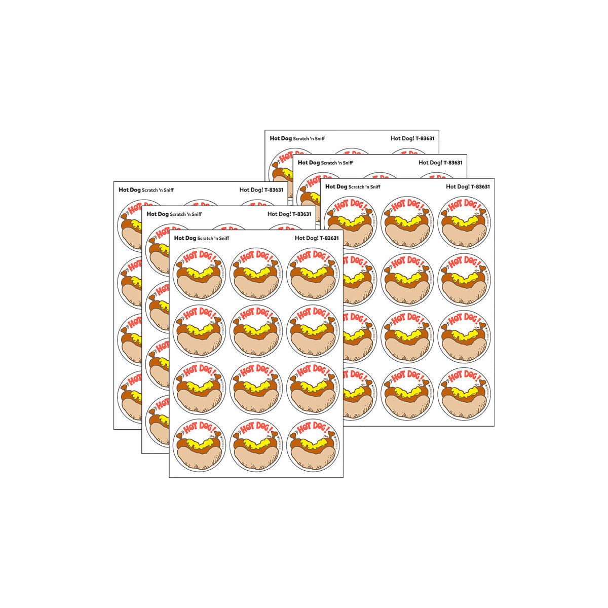 Get a whiff of this Hot Dog!, hot dog-scented sticker! TREND Scratch 'n Sniff Stinky Stickers® from the '80s are BACK! Fun to collect, trade, and celebrate accomplishments and special occasions. Collectors will be happy to spot the ˜… to distinguish TREND Retro Stinky Stickers® from those printed in the 1980s. Each sticker 1.25" diameter. Each pack includes 24 stickers on 2 sheets in 1 design. Sold as 6 packs for a total of 144 stickers.
