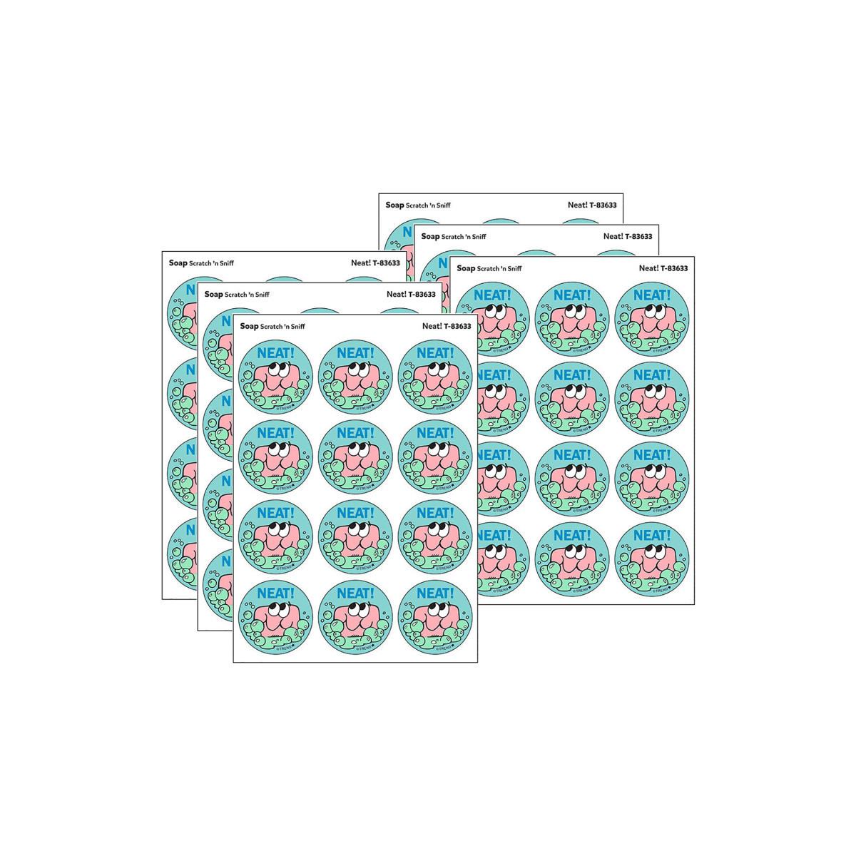 Get a whiff of this Neat!, soap-scented sticker! TREND Scratch 'n Sniff Stinky Stickers® from the '80s are BACK! Fun to collect, trade, and celebrate accomplishments and special occasions. Collectors will be happy to spot the ˜… to distinguish TREND Retro Stinky Stickers® from those printed in the 1980s. Each sticker 1.25" diameter. Each pack includes 24 stickers on 2 sheets in 1 design. Sold as 6 packs for a total of 144 stickers.