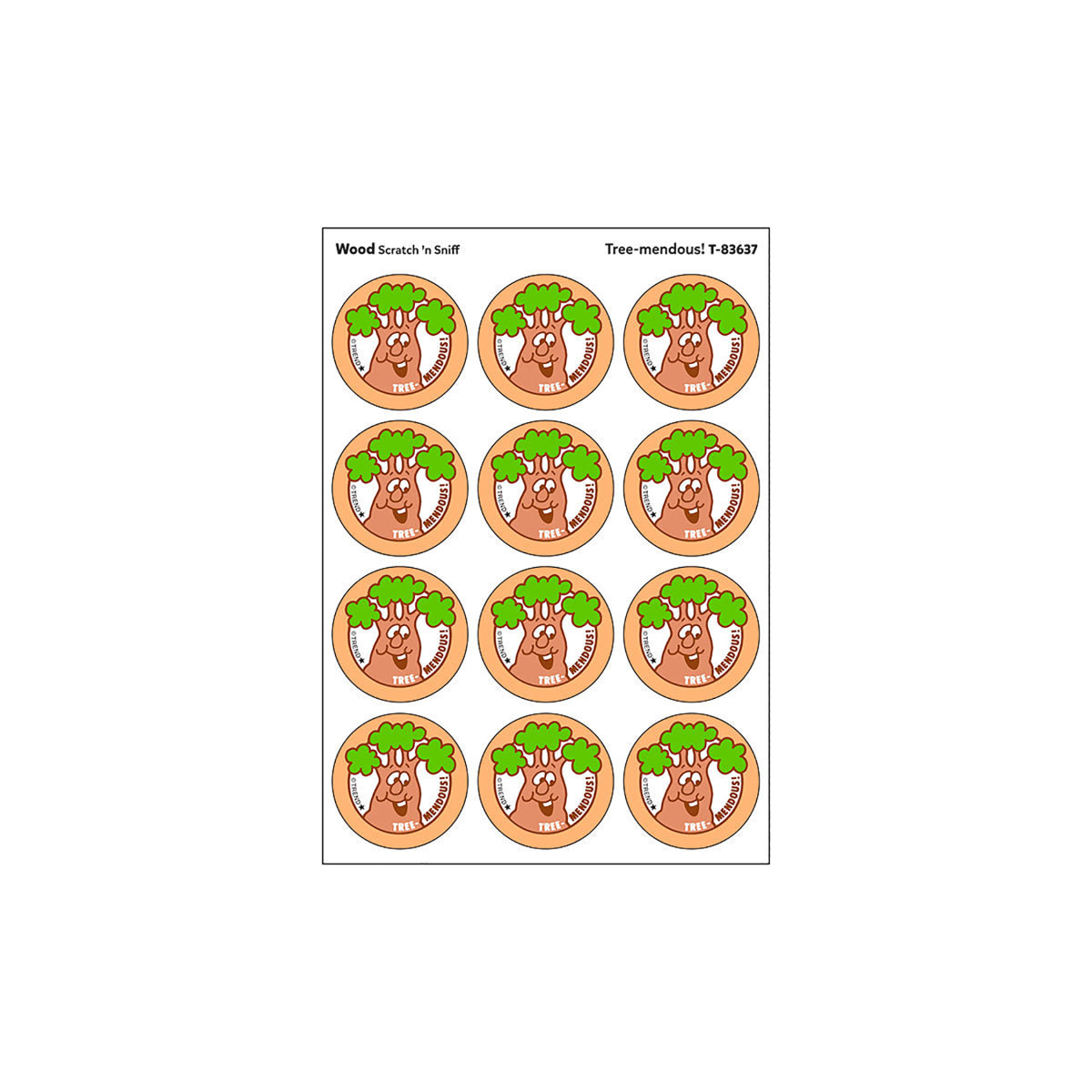 Get a whiff of this Tree-mendous!, wood-scented sticker! TREND Scratch 'n Sniff Stinky Stickers® from the '80s are BACK! Fun to collect, trade, and celebrate accomplishments and special occasions. Collectors will be happy to spot the ˜… to distinguish TREND Retro Stinky Stickers® from those printed in the 1980s. Each sticker 1.25" diameter. Each pack includes 24 stickers on 2 sheets in 1 design.