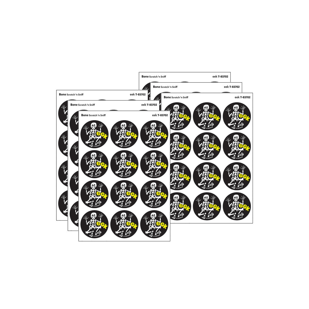 Get a whiff of this eek, bone-scented sticker! TREND Scratch 'n Sniff Stinky Stickers® from the '80s are BACK! Fun to collect, trade, and celebrate accomplishments and special occasions. Collectors will be happy to spot the ˜… to distinguish TREND Retro Stinky Stickers® from those printed in the 1980s. Each sticker 1.25" diameter. Each pack includes 24 stickers on 2 sheets in 1 design. Sold as 6 packs for a total of 144 stickers.