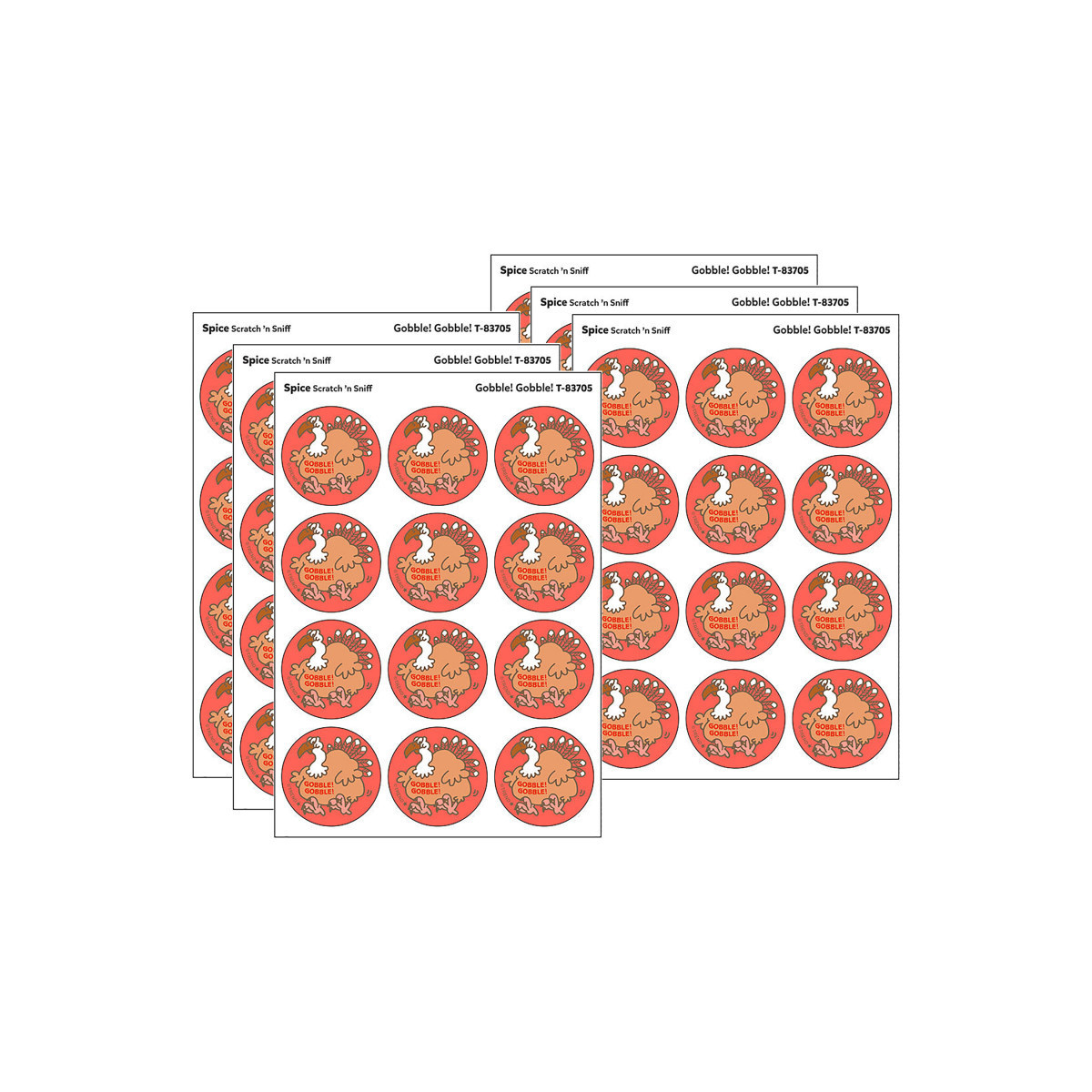 Get a whiff of this Gobble! Gobble!, spice-scented turkey sticker! TREND Scratch n Sniff Stinky Stickers from the '80s are BACK! Fun to collect, trade, and celebrate accomplishments and special occasions. Collectors will be happy to spot the ˜… to distinguish TREND Retro Stinky Stickers® from those printed in the 1980s. Each sticker 1.25" diameter. Each pack includes 24 stickers on 2 sheets in 1 design. Sold as 6 packs for a total of 144 stickers.