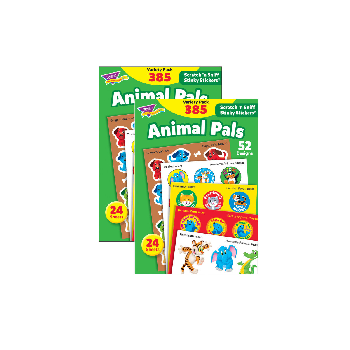 52 designs, 385 stickers, 5 scents. Sold as 2 packs, 770 stickers total.