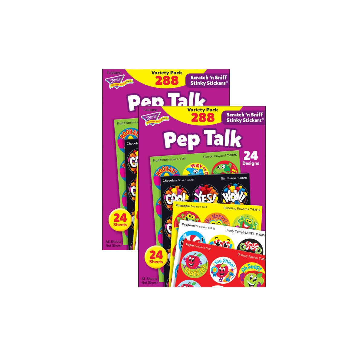 Scratch 'em and sniff 'em for a burst of fragrance! Everyone's favorite stickers, Stinky Stickers® are fun to collect or use to motivate and reward. Designs include Unique Unicorns, Country Critters, Can-do Crayons, Ribbeting Rewards, Candy Compli-MINTS, Snappy Apples, It's a Party! Designs may vary. Acid free, nontoxic, and safe for use on photos. Each pack includes 288 stickers in 24 designs and 8 scents. Sold as 2 packs for a total of 576 stickers.