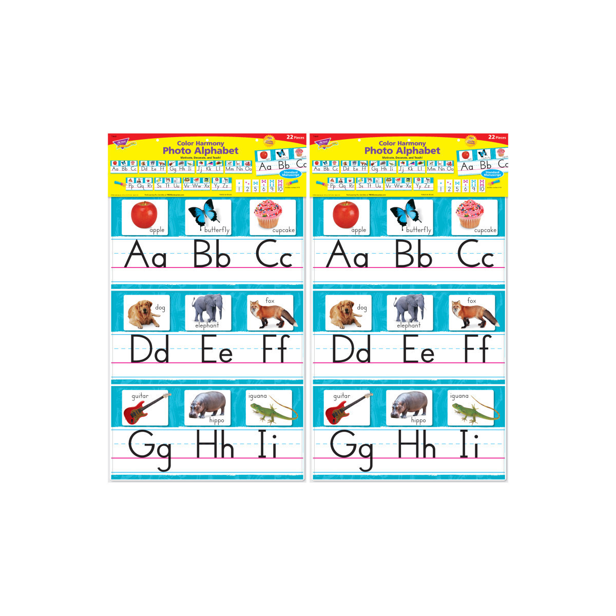 Teach the alphabet and numerals more with this bright, photo-real set. Vocabulary words extend learning opportunities. Images feature high-interest objects, commonly recognized by children and adults. Separate number cards 0-10 are 4 3/8" x 8 3/8". Pointers highlight letters or numbers. Alphabet is 8 3/8" x 12 3/4' fully assembled. Each set includes 22 pieces. Sold as a pack of 2 complete sets.