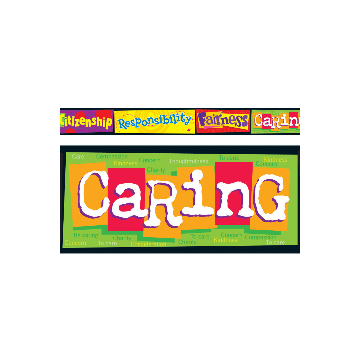 Patterned borders bring life and learning into any room. Content assists learning objectives.