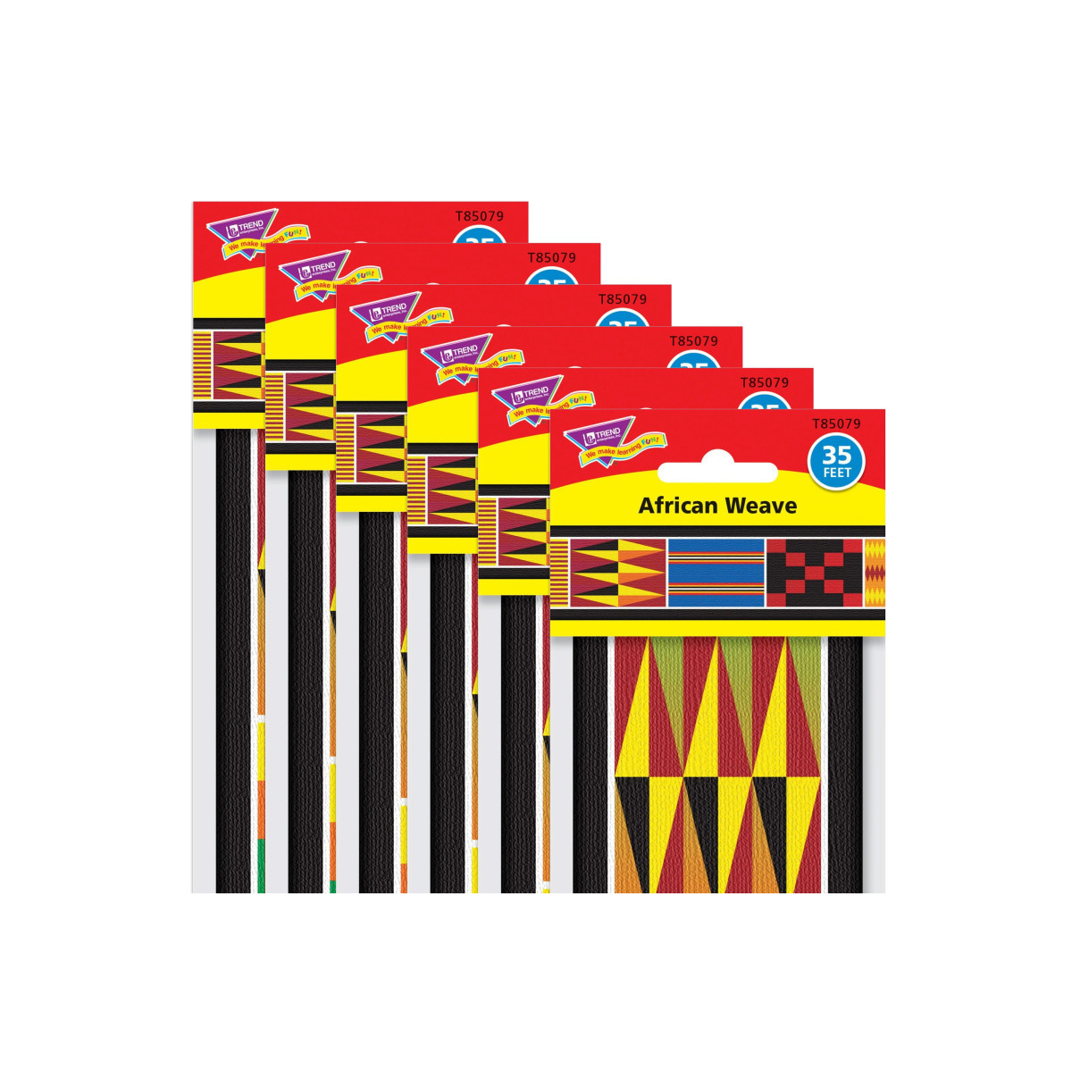 Brighten, sparkle, and inspire! Popular designs and colors capture attention and add energy and excitement to any space. Create show stopping displays, develop eye-catching morning message boards and daily schedules, add pizzazz to scrapbooks, crafts, and projects, the possibilities are endless! 2.75" x 35.75' per pack. Precut, durable, reusable. Sold as 6 packs.