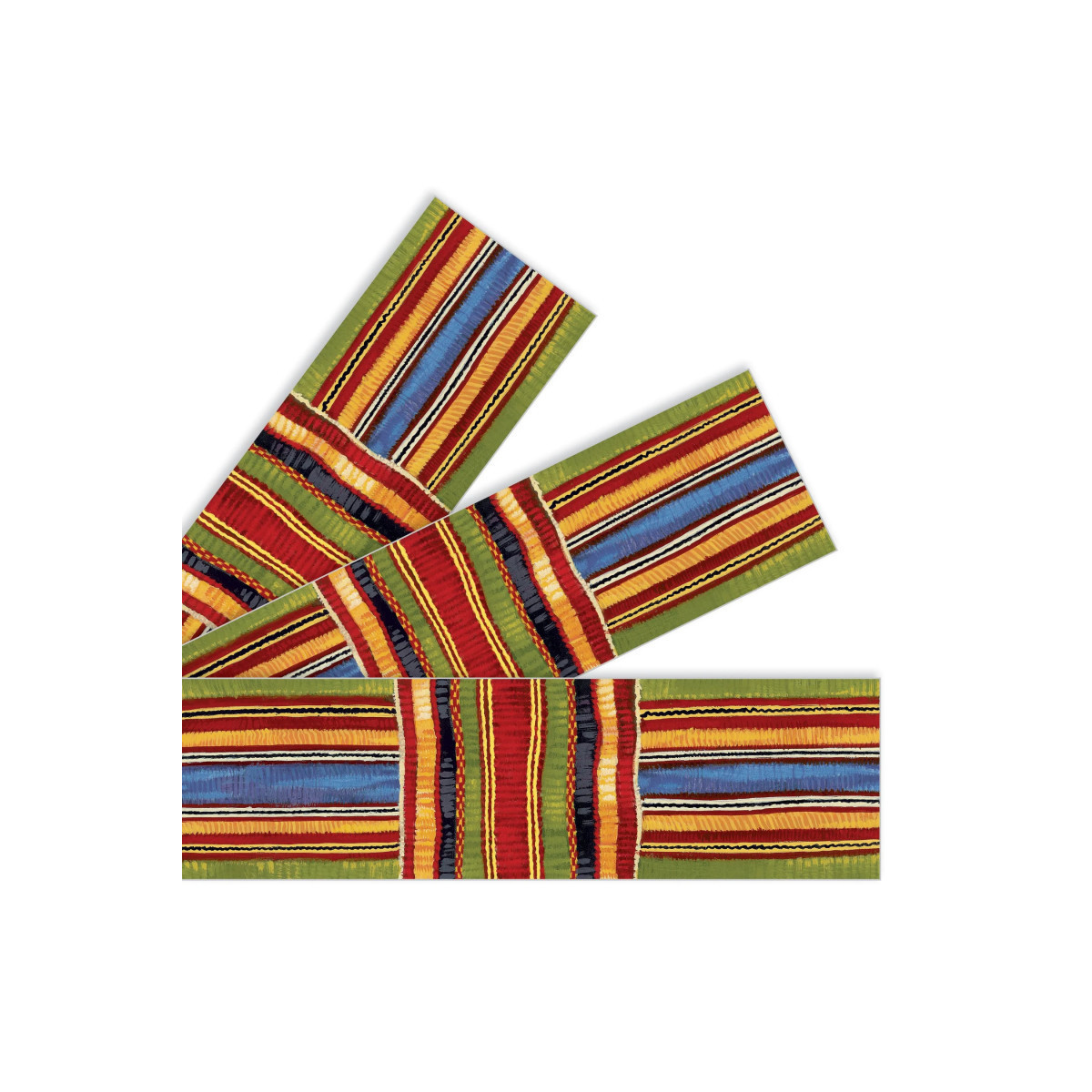 Straight-edge design fits spaces easily. Layer with solid-color borders for extra visual appeal.