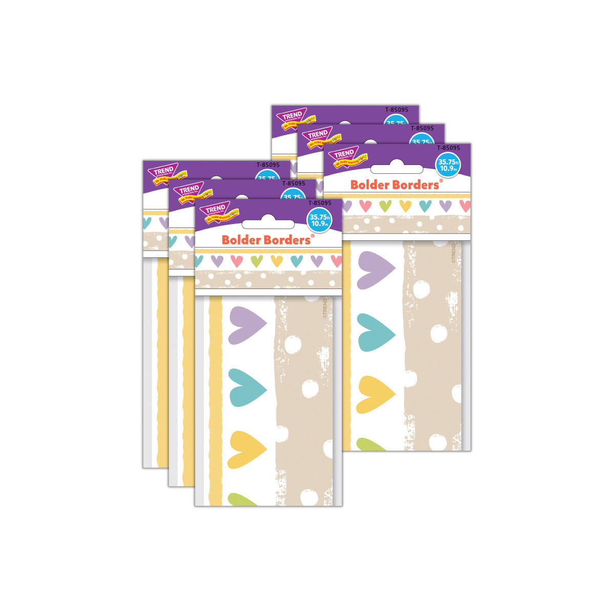 Energize spaces and places and set the stage for learning success with contemporary designs and fun patterns. Showcase student work; display bulletin boards with flair; add pizzazz to scrapbooks, crafts, and projects - the possibilities are endless! Precut, durable, reusable. Each pack includes 11 strips, each 39" long by 2.75" wide, for a total of 35-3/4 feet. Sold as 6 packs for a total of 66 strips (214-1/2 feet).