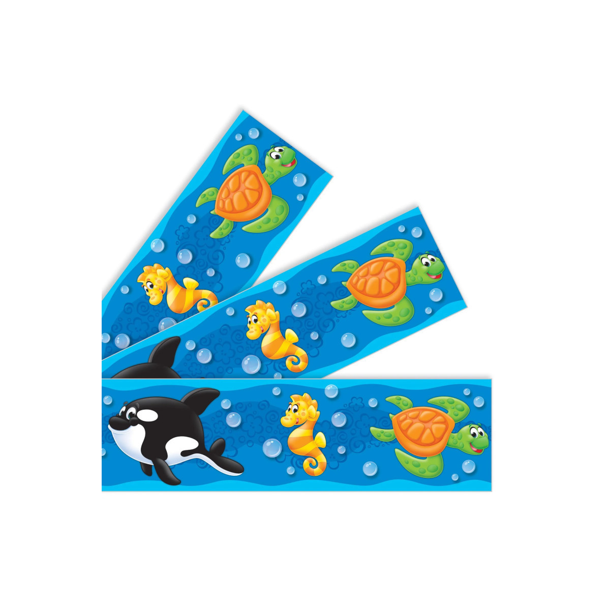 Energize spaces and places and set the stage for learning success with contemporary designs and fun patterns. Showcase student work with sparkle ... display bulletin boards with flair .... add pizzazz to scrapbooks, crafts, and projects ... the possibilities are endless! 2 3/4" x 35 3/4' per pack. Precut, durable, reusable. Coordinates with Sea Buddies™ Collection.