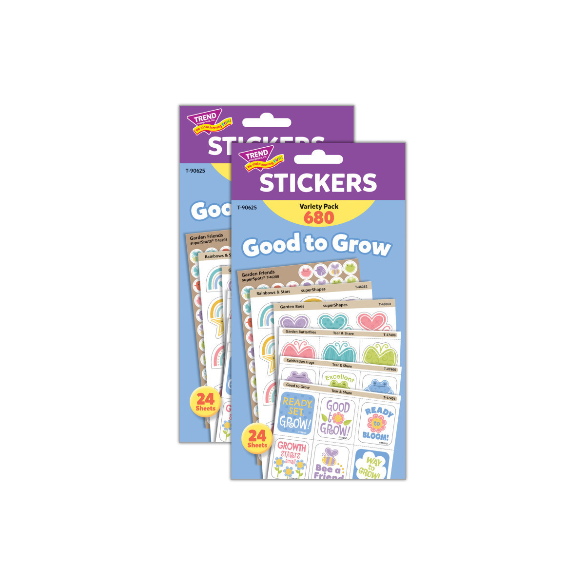 Convenient assortment set of Good to Grow themed stickers gives you variety for any motivation occasion! Sizes vary from 5/8" to 1-15/16". Nontoxic and safe for use in scrapbooks and journals. Made in USA. Each pack includes 680 stickers on 24 sheets in 71 designs. Sold as 2 packs for a total of 1360 stickers.