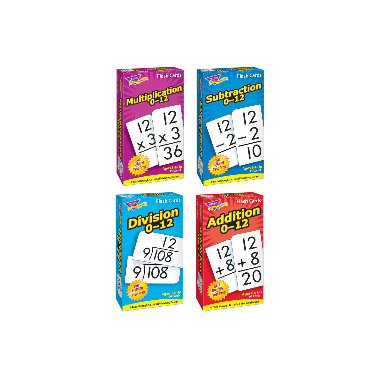 Content-rich math cards do their job, teaching students new skills in a fun way. This educational aid develops basic multiplication skills 0-12. Self-checking, answers on card backs. Sturdy cards and storage box. Students will delight in mastering new skills. No-see-through cards with quick-sorting, rounded corners. 91 cards, 3" x 6". For ages 8 and up.