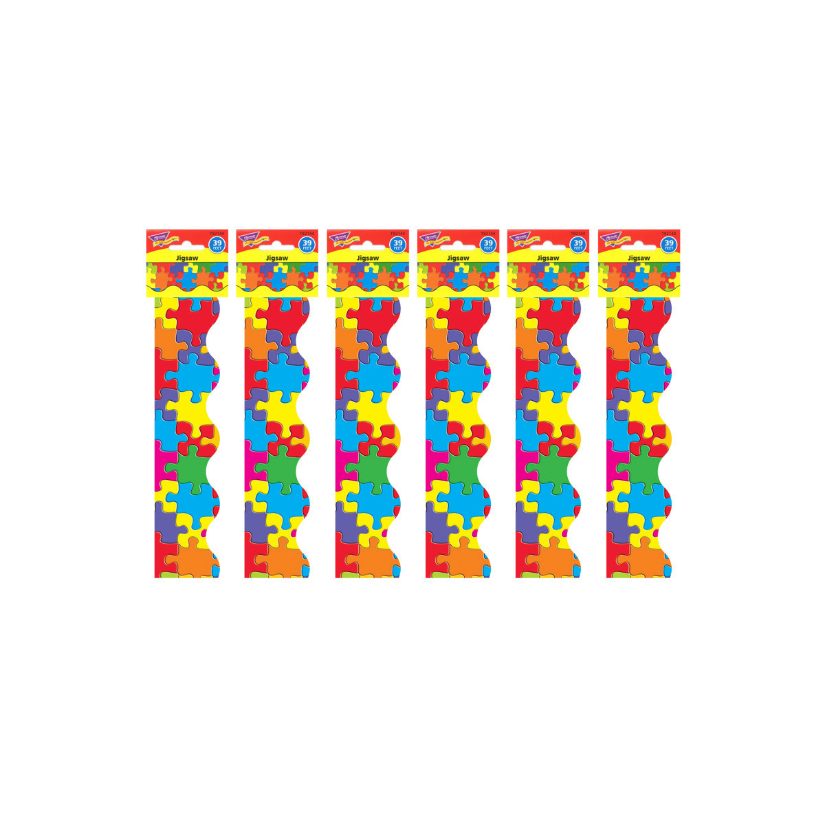 Vibrant, contemporary designs create warm, inviting spaces, tickle imaginations, and bring learning to life! Layer patterns on solids, sparkles, or metallics; or use as-is to showcase student work in style, make funky crowns and bookmarks, and engage and delight. The perfect finishing touch for whiteboards, reward charts, calendars, any display. Durable and reusable. Includes 2.25" x 39' per pack. Sold as a set of 6 packs, 234 feet total.