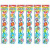Vibrant colors for inspired learning spaces! Use individually or layer patterns on solids, sparkles, or metallics to engage and delight. Showcase student work, make crowns, bookmarks, and more. The perfect finishing touch for whiteboards, reward charts, calendars & displays. Decorate classrooms and enhance learning environments with durable Terrific Trimmers®. Each pack includes 12 strips measuring 2.25" x 39". Sold as 6 packs for a total of 72 strips (234 feet).