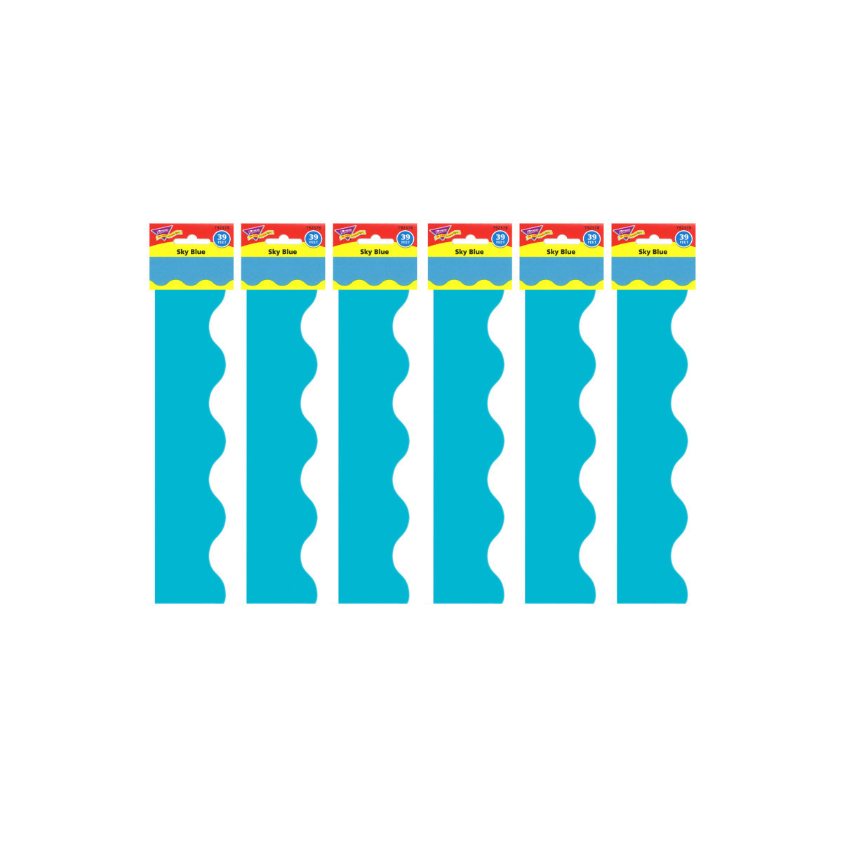 Pre-cut, scalloped trim works with any bulletin board or display space. Attach with tape or staples.