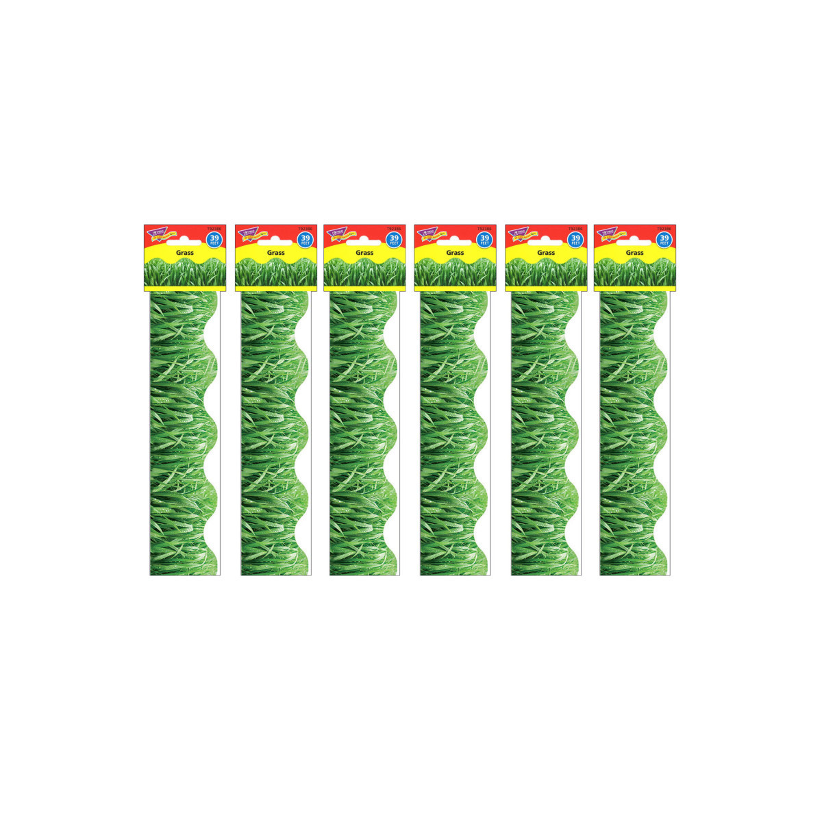 Pre-cut, scalloped trim works with any bulletin board or display space. Attach with tape or staples.