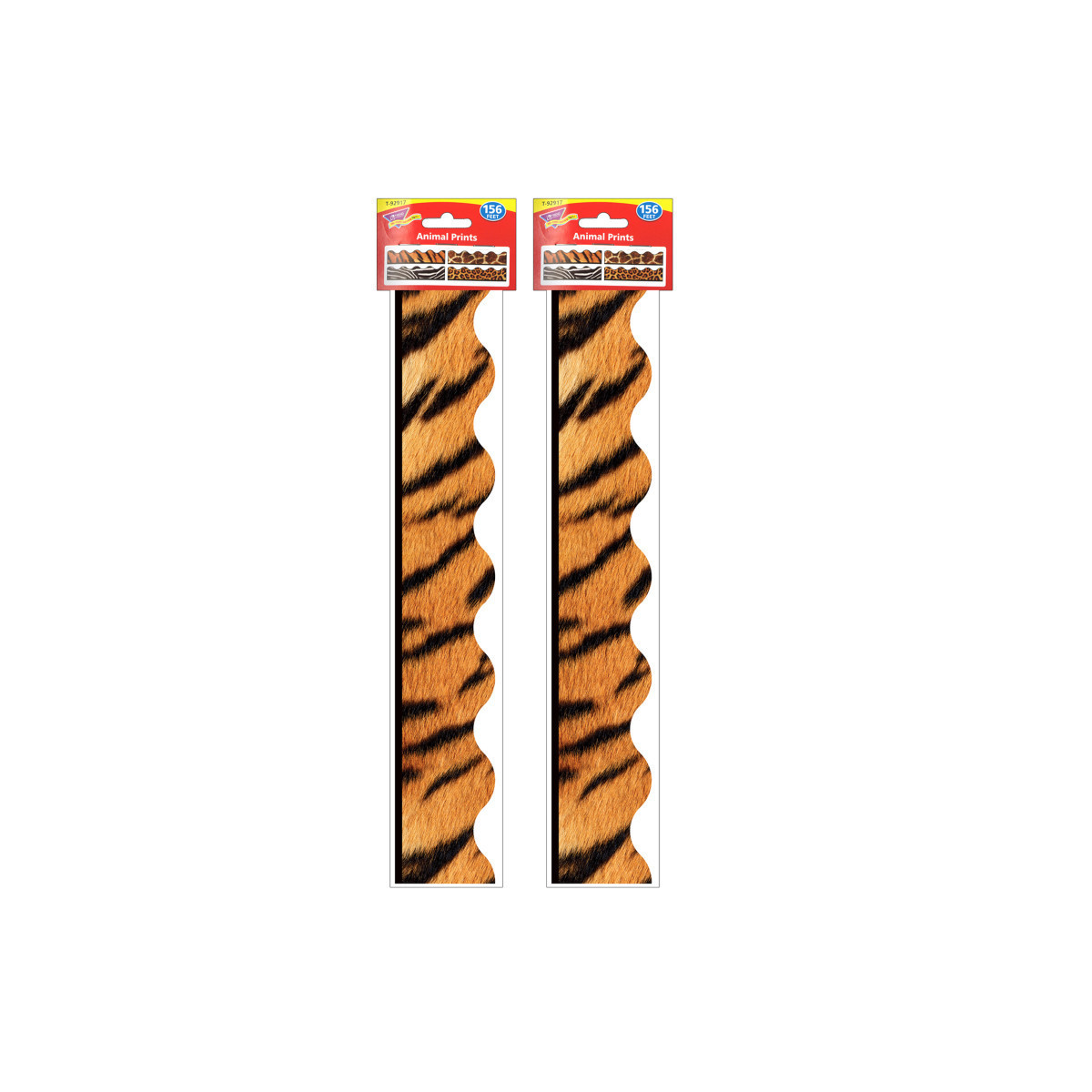 Irresistible designs at your fingertips! Spruce up your spaces and rev up the fun with a convenient Variety Pack of Terrific Trimmers. Vibrant, contemporary designs create cheerful, inspiring classrooms, add pizzazz to parties and events, inspire clever hats 'n crowns, and dress up storage containers, cubbies, and shelves. Layer patterns on solids, sparkles, or metallics for extra WOW! Durable and reusable. Each pack includes Leopard, Zebra, Giraffe, and Tiger Terrific Trimmers. 156' per pack. Sold as 2 packs.