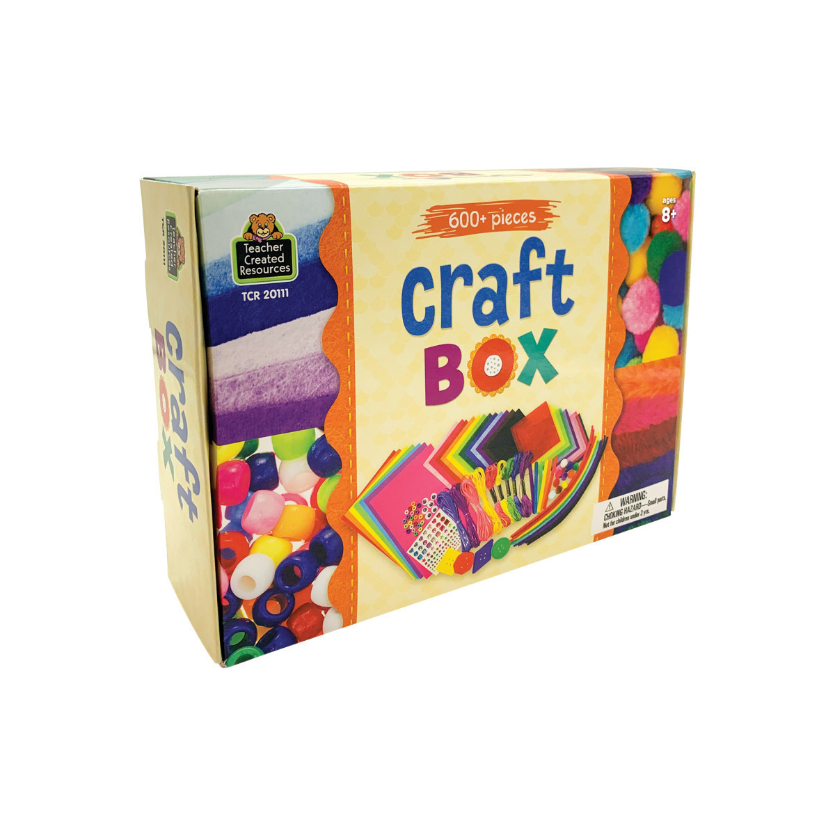 Unlock your imagination and let your creativity run wild! From felt squares and tissue paper to googly eyes and jewel stickers, this box is filled with everything you'll need to start your next crafting adventure. Discover your inner artist and create something beautiful—the possibilities are endless! Includes 50 googly eyes, 200 pony beads, 20 large buttons in assorted shapes, 12 felt squares (4" x 4"), 50 pom-poms, 60 tissue paper squares (4" x 4"), 60 colored craft sticks, 4 plastic lacing cords (5 yd each), 117 adhesive jewels, 5 craft floss (8.75 yd each), 50 pipe cleaners, 7 construction paper sheets (6" x 9").