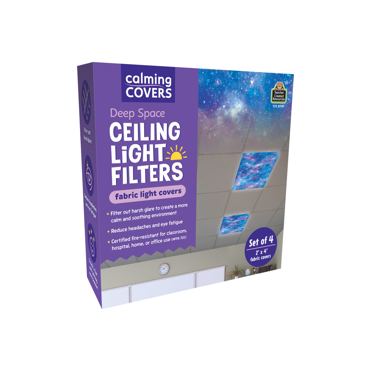 Teacher Created Resources® Calming Covers Ceiling Light Filters, 2' x 4', Deep Space, Pack of 4