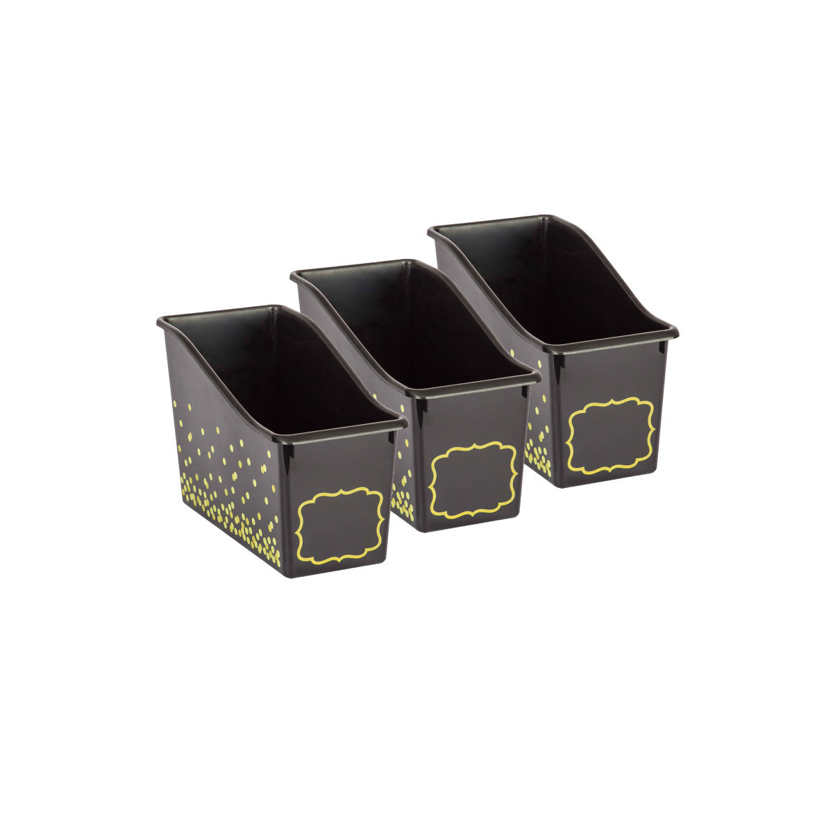 Add a little style to your organization with these plastic book bins. Store books, folders, binders, magazines, notebooks, and much more! Each book bin measures 5-1/2" L x 11-3/8" W x 7-1/2" H. Sold as a pack of 3 book bins.